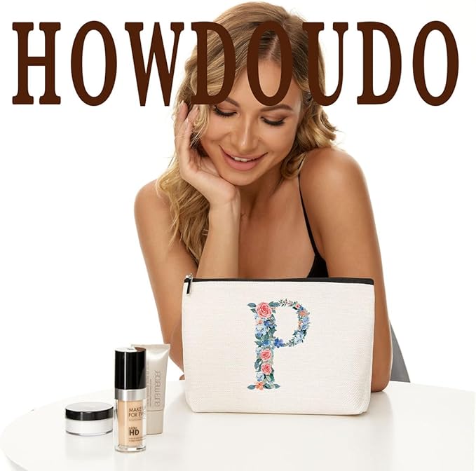 Initial Makeup Bag Monogrammed Travel Toiletry Bag Monogram Cosmetic Bag Birthday Christmas Bridal Shower Bridesmaid Gifts Personalized Gifts for Women Bride Teacher Sister Nurse, Floral Letter P