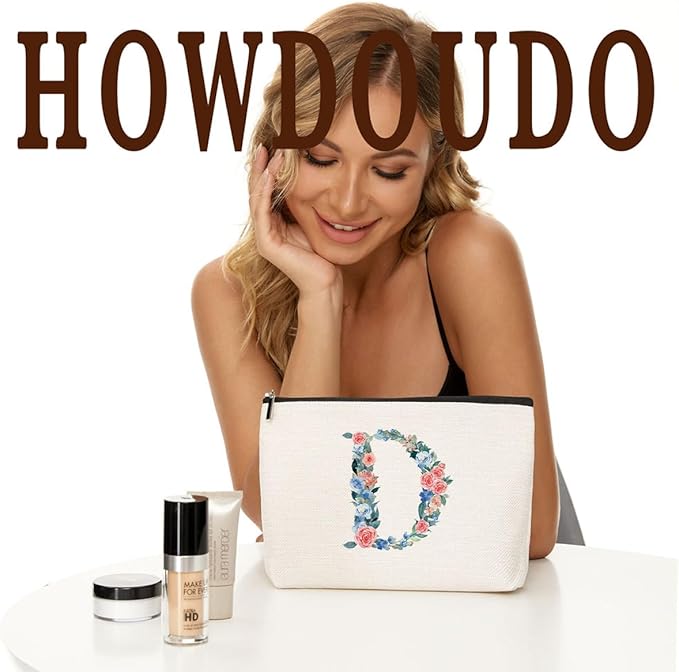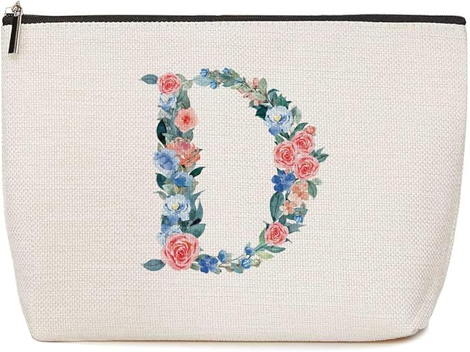 Initial Makeup Bag Monogrammed Travel Toiletry Bag Monogram Cosmetic Bag Birthday Christmas Bridal Shower Bridesmaid Gifts Personalized Gifts for Women Bride Teacher Daughter, Floral Letter D