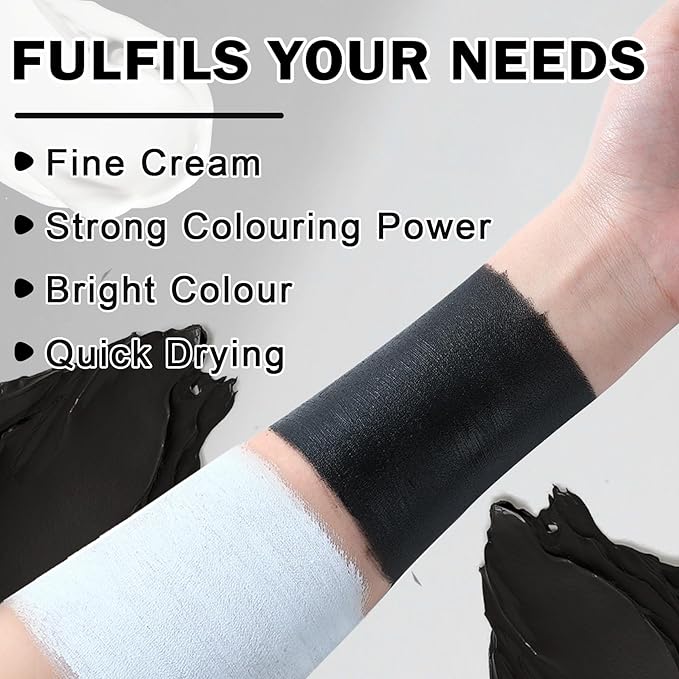 - HIGHLY PIGMENTED: White and black face paint has bright colors, semi-matte effect, long-lasting waterproof, fast drying, and not easy to fade. It is the first choice for various sfx makeup professional long-lasting foundation makeup, suitable for all ages