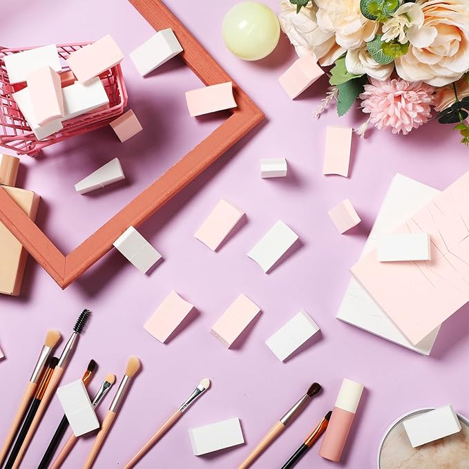 - Triangle Makeup Sponges: package includes 100 pieces foam wedges in pink and white colors, 50 of each color