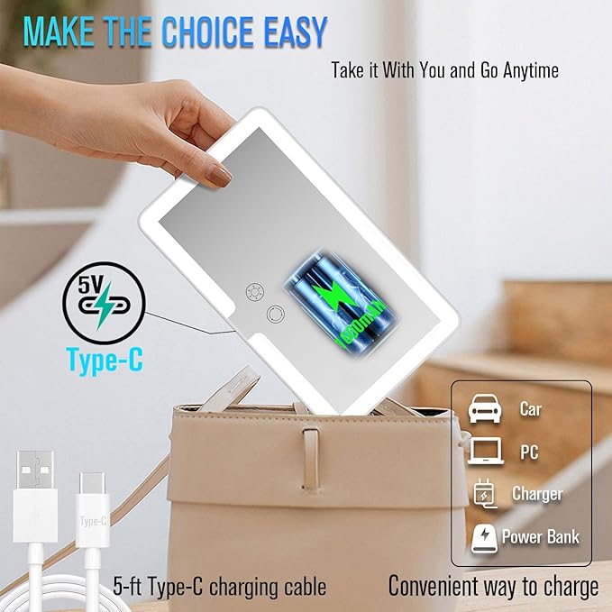 - 【Rechargeable & Portable】This car mirror vanity has a built-in 1500mah rechargeable battery and uses a Type-C charging interface, so it is very portable. In addition to being installed on the sun visor inside the car, you can also carry it with you.