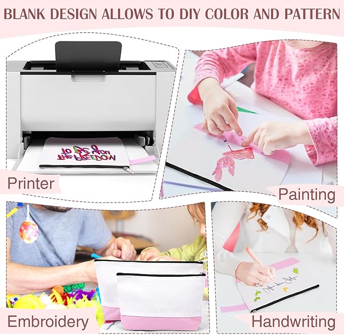 10 Pieces Cotton Canvas Makeup Bag with Bottom and Strap, Multi-Purpose Cosmetic Bag with Zipper Travel Toiletry Pouch, Blank DIY Craft Bag (White&Pink, S)