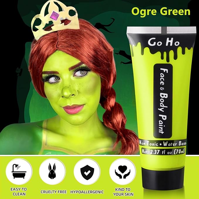 Go Ho Ogre Green Face Body Paint Washable(2.37oz/pc),Water Based Cream Ogre Green Face Paint and Body Paint,Halloween Costumes Festivals Cosplay SFX Makeup