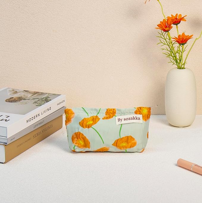 - Floral Pouch Pattern Small Cosmetic Bag for Purse: The large makeup purse feature a beautiful orange taro flower print, adding a touch of style to your makeup routine. Make you feel happy everyday.