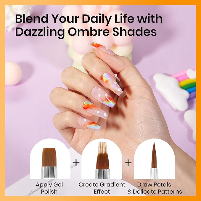 - Double-Headed Design: Each brush features a double-headed design, allowing you to complete all nail art steps with just one brush, eliminating the need to switch mid-process. With oval, flat, dot, petal, french, and gradient brushes, it meets all your nail art needs, making your creation process more efficient and convenient.