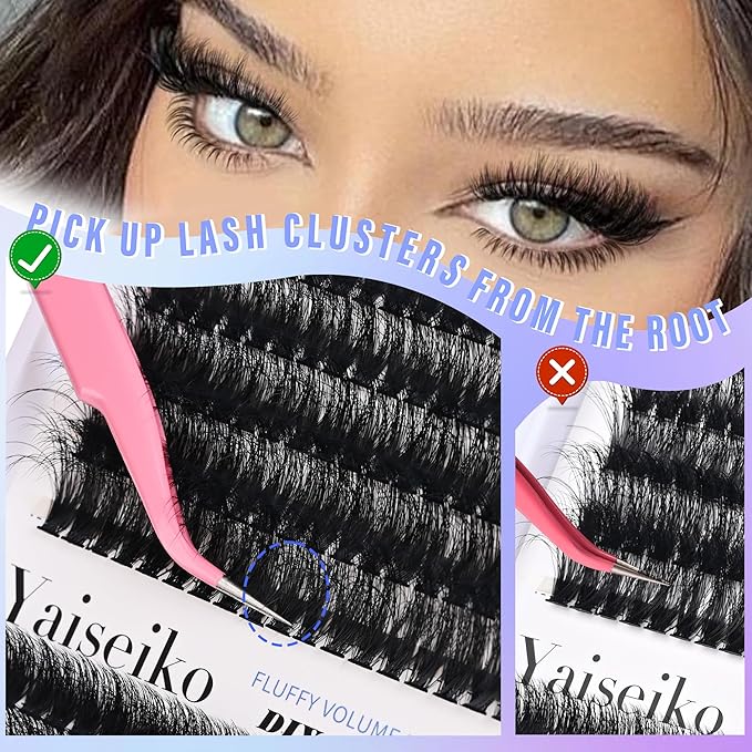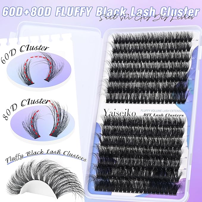 Fluffy Lash Cluster Eyelash Extensions 14-25mm Thick Lash Clusters 60D+80D D Curl Wispy Individual Lashes 280pcs False Eyelashes DIY Plant Fibers Lash Extension, by Yaiseiko