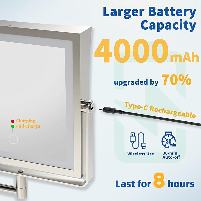 - [High Capacity Battery] 4000mah battery capacity, this double-sided bathroom vanity mirror's can be used continuously for 8 hours