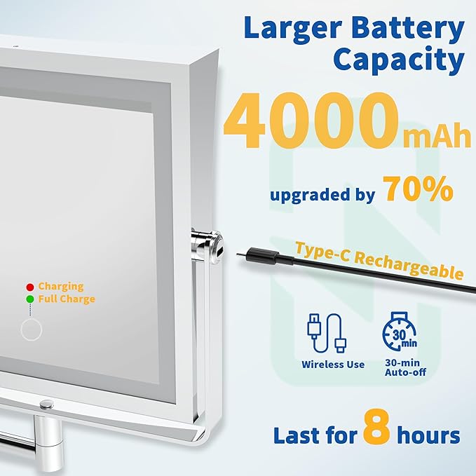 - [High Capacity Battery] 4000mah battery capacity, this double-sided bathroom vanity mirror's can be used continuously for 8 hours