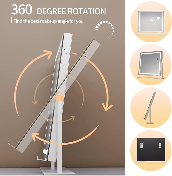 - ใ๐๐๐ยฐ๐๐จ๐ญ๐๐ญ๐ข๐จ๐งใ360 degree free rotation can allows you to place this lighted make up mirror swiveled to each side easily and help you allows you to see more detail, convenient for you to select the best angle or position