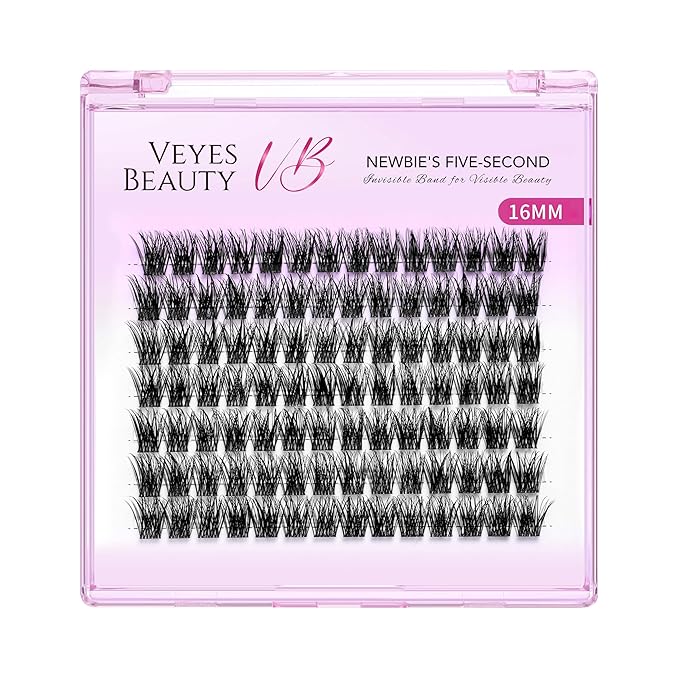 VEYESBEAUTY Lash Clusters Individual Eyelash Extensions Thin & Invisible Band DIY False Eyelashes for Self-application Newbie's Five-Second Series Wispy Lash Tray, Dreamy 16mm Single Length