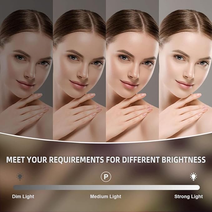 - Sensor switch on the screen, one touch to light on, adjust the brightness by long pressing "P" button, "M" for changing the lighting mode, glass mirror with no magnification, no distortion