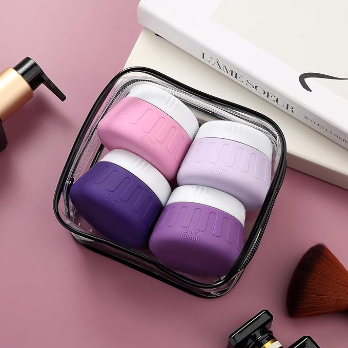 - Convenient Travel Kit: The compact size of the jars makes them easy to carry in pockets, handbags, and backpacks. 4-pack in different colors for easy identification of contents and keep your toiletries organized and accessible.