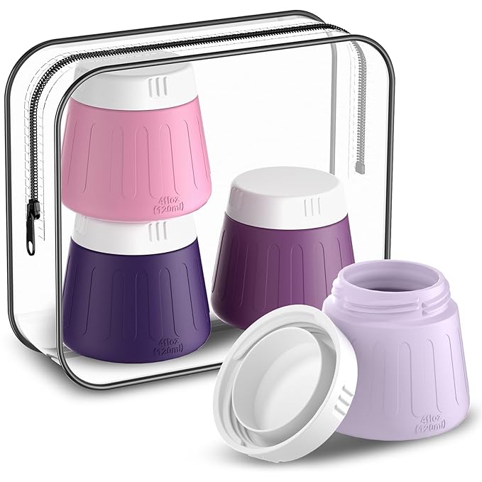 - Convenient Travel Kit: The compact size of the jars makes them easy to carry in pockets, handbags, and backpacks. 4-pack in different colors for easy identification of contents and keep your toiletries organized and accessible.