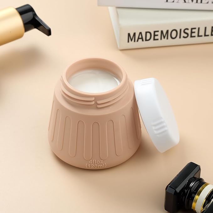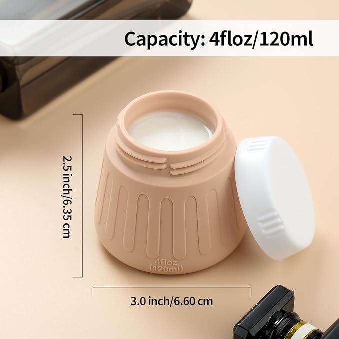 Gemice 4 OZ Travel Size Containers for Toiletries, Leak-Proof Silicone Slime Jars with Lids, BPA Free Small Round Cosmetic Slime Container for Lotion, Cream, Ointments, Travel Storage (4 Pack)