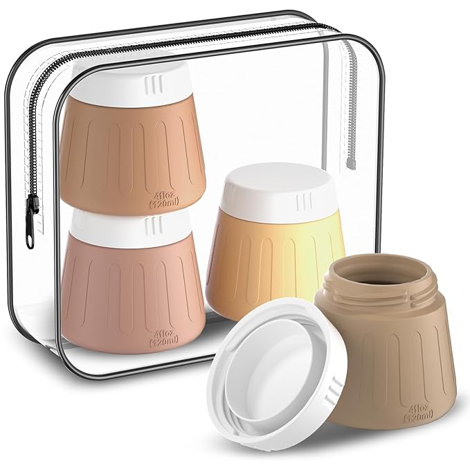 - Convenient Travel Kit: The compact size of the jars makes them easy to carry in pockets, handbags, and backpacks. 4-pack in different colors for easy identification of contents and keep your toiletries organized and accessible.