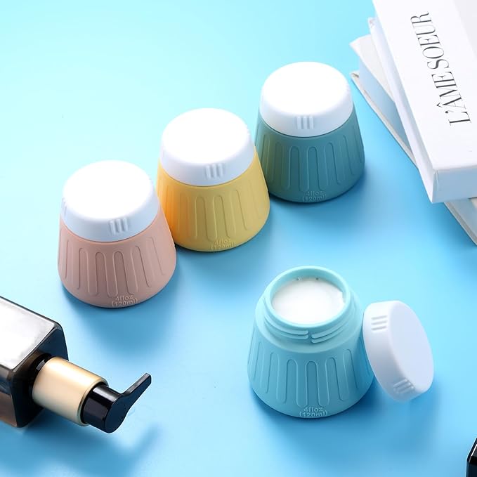 - Convenient Travel Kit: The compact size of the jars makes them easy to carry in pockets, handbags, and backpacks. 4-pack in different colors for easy identification of contents and keep your toiletries organized and accessible.