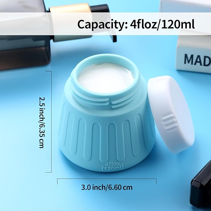 Gemice 4 OZ Travel Size Containers for Toiletries, Leak-Proof Silicone Slime Jars with Lids, BPA Free Small Round Cosmetic Slime Container for Lotion, Cream, Ointments, Travel Storage (4 Pack)