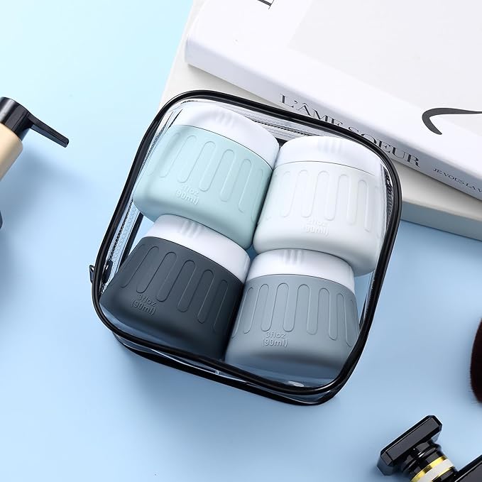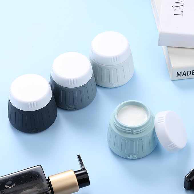 - Convenient Travel Kit: The compact size of the jars makes them easy to carry in pockets, handbags, and backpacks. 4-pack in different colors for easy identification of contents and keep your toiletries organized and accessible.