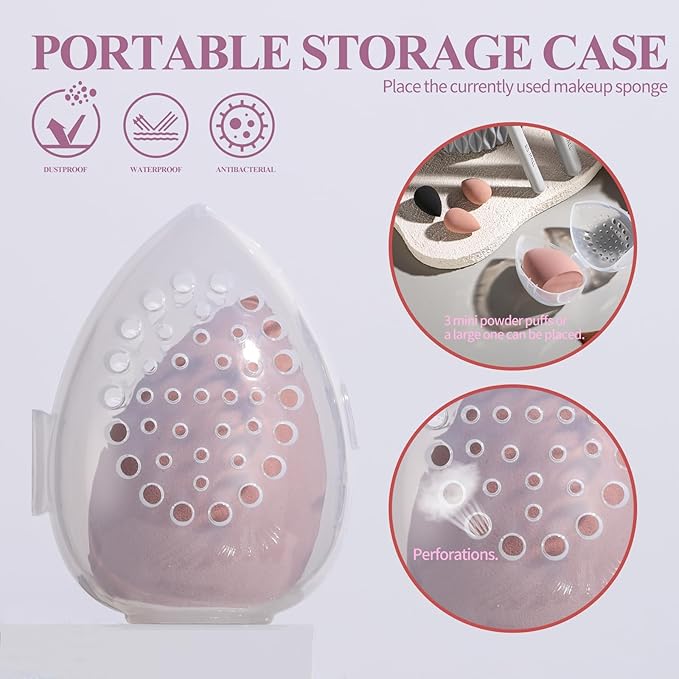 - 🎀Comes with 3 mini and 2 regular-sized makeup sponges for a more seamless makeup application, it also includes a makeup sponge holder for convenient storage while travelling.