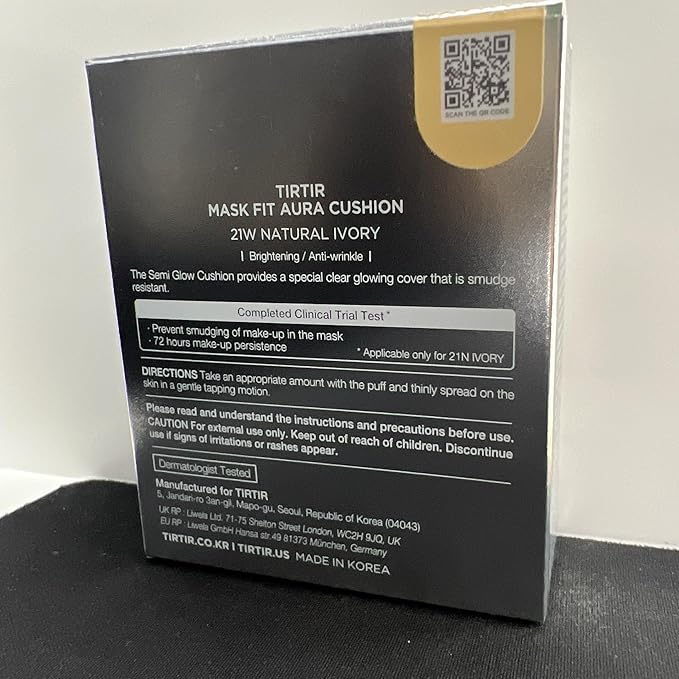 TIRTIR Mask Fit Aura Silver Cushion Foundation | Semi-glow Finish, Natural Coverage, Moisturizing, Lightweight, Korean cushion foundation (#21W Natural Ivory, Full Size, 0.63 Fl Oz)
