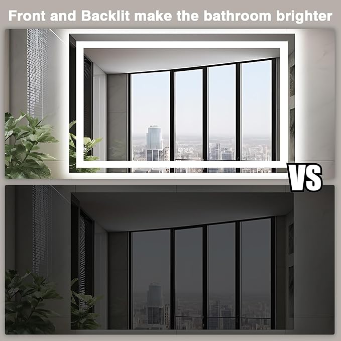 50"x36" Lighted Mirrors for Bathroom Wall, Anti-Fog LED Vanity Mirror, Shatter-Proof, 3 Colors Memory Mirror (Horizontal/Vertical)