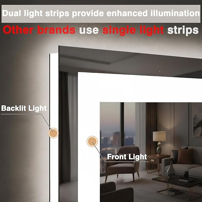 60"x36" LED Mirror for Bathroom, Front and Backlit, Anti-Fog Bathroom Mirror with Lights, Stepless Dimmable Lighted Mirror, 3 Colors Smart Mirror (Horizontal/Vertical)