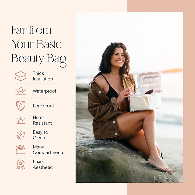 - Heat And Water Are No Match: The aesthetic makeup case is made from waterproof vegan leather with a leak-proof zipper, ultra-thick insulation and an aluminum liner that'll keep your beauty products safe from spills, moisture, and warm/cool temperatures