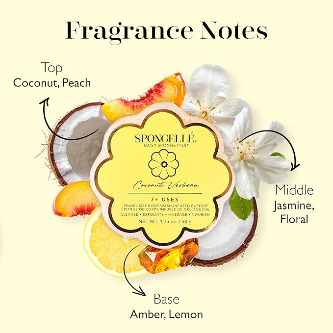 Spongelle Coconut Verbena Spongette Loofah Body Scrubber | Bath & Shower Loofah for Women | Body Scrubber Exfoliator with Body Wash Infused Sponge | 5+ uses | Creamy Coconut, Verbena & Lime