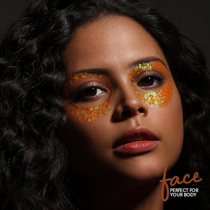 - Travel-Friendly, Perfect for Any Event: Packed with 80 grams of sparkling goodness, our jar is not only generously sized but also compact enough to slip into your bag for on the go glam. Make every occasion sparkle, whether you're at home or on the move! From everyday sparkle to holiday cheer, concerts, parties, and celebrations, our orange body glitter gel transforms your look instantly.