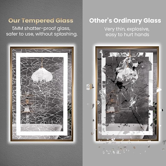 About This [Double Bright Lights & Gold Frame]: With built-in LED strip light, Amorho LED bathroom mirror with front light... Read more