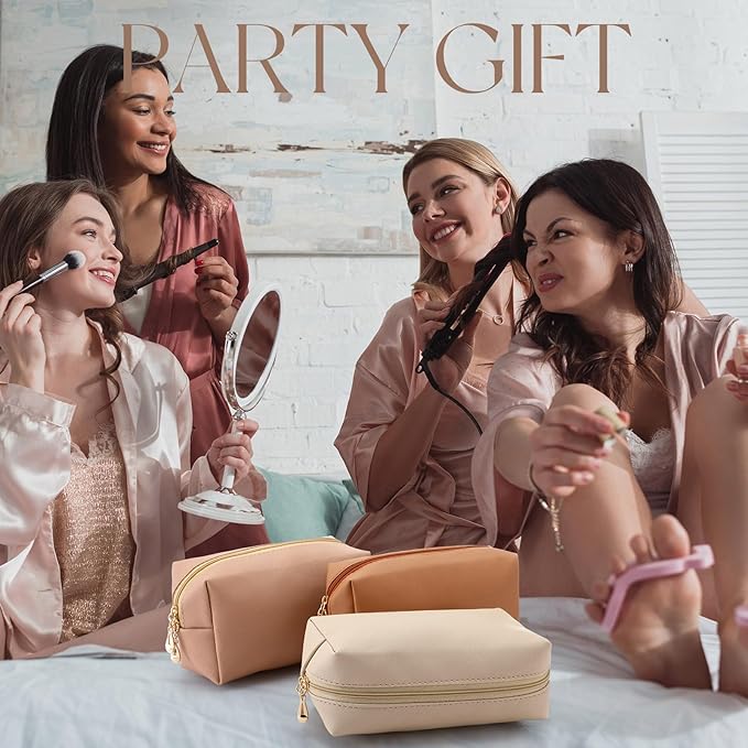 Kigeli 15 Pcs Aesthetic Makeup Bags PU Leather Cosmetic Pouches Waterproof Plain Toiletry Bags Makeup Pouches Bulk for Women Party Gift Travel Storage Organizer(Retro Color)