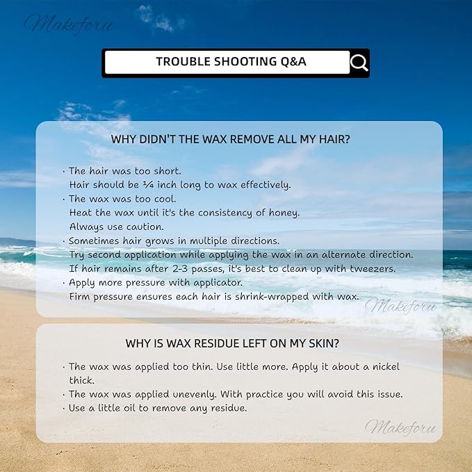 - Hair removal wax beads are easy to apply: Hard waxing beads are compatible with any epilators and hair removal kits, easy and convenient to use at home.To avoid the embarrassment of cracked wax beads or fast drying during use for newbies, wait 5-8 minutes after the wax beads have melted. Stir to thicken the wax beads slowly. Be careful to apply in the direction of the hair and tear off in the opposite direction with quick movements.