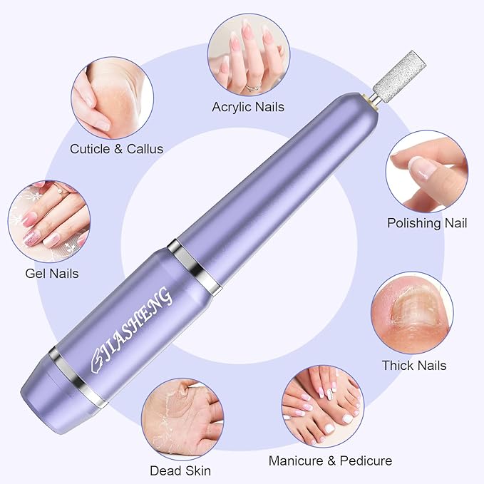 JIASHENG USB Electric Nail Drill, Portable Electric Nail File for Acrylic Gel Nails, Professional Drill Nail Kit Manicure and Pedicure Kit with Drill Bits for Home and Salon Use, Lilac