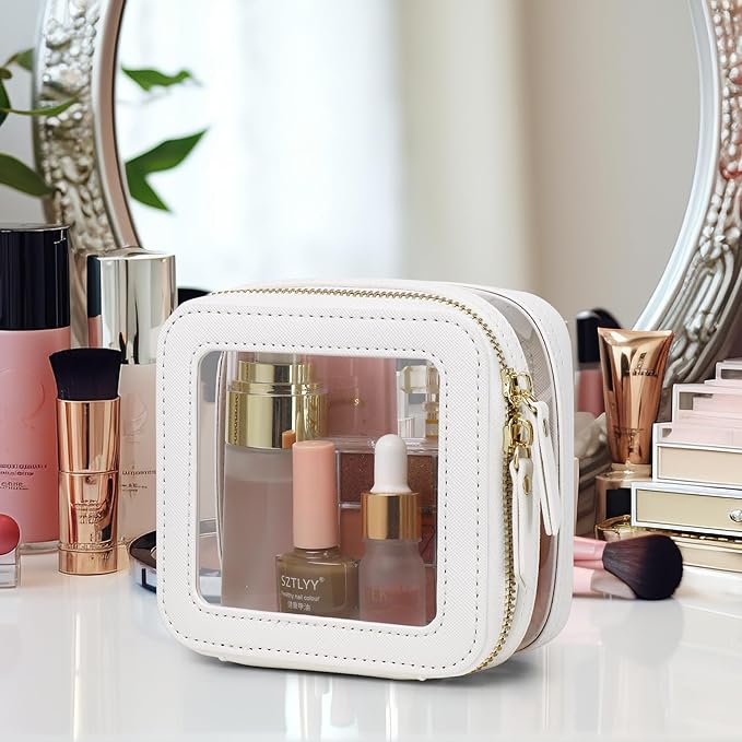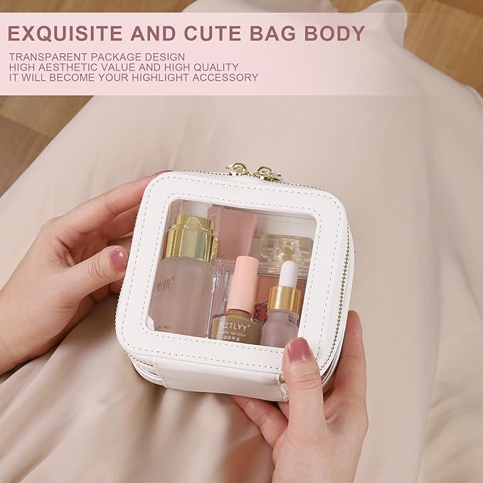- [High-quality material] : Made from waterproof durable and soft Faux Leather material, this clear mini cosmetic case is easy to clean with a damp cloth or wet tissue.