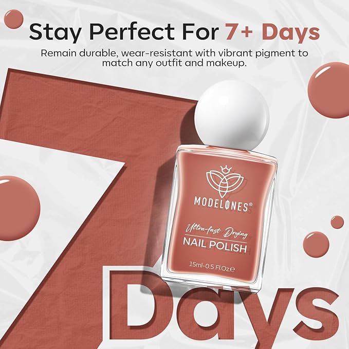 - No U V Needed & Quick Dry: With modelones innovative quick dry formula, say goodbye to long drying times and hello to flawless nails in 90 seconds. This nail lacquer is anti-chip and anti-peel, offering a "no streaks, no hassle" experience and bringing you the long-lasting shine of more than 8 days
