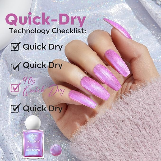- No U V Needed & Quick Dry: With modelones innovative quick dry formula, say goodbye to long drying times and hello to flawless nails in 90 seconds. This nail lacquer is anti-chip and anti-peel, offering a "no streaks, no hassle" experience and bringing you the long-lasting shine of more than 8 days