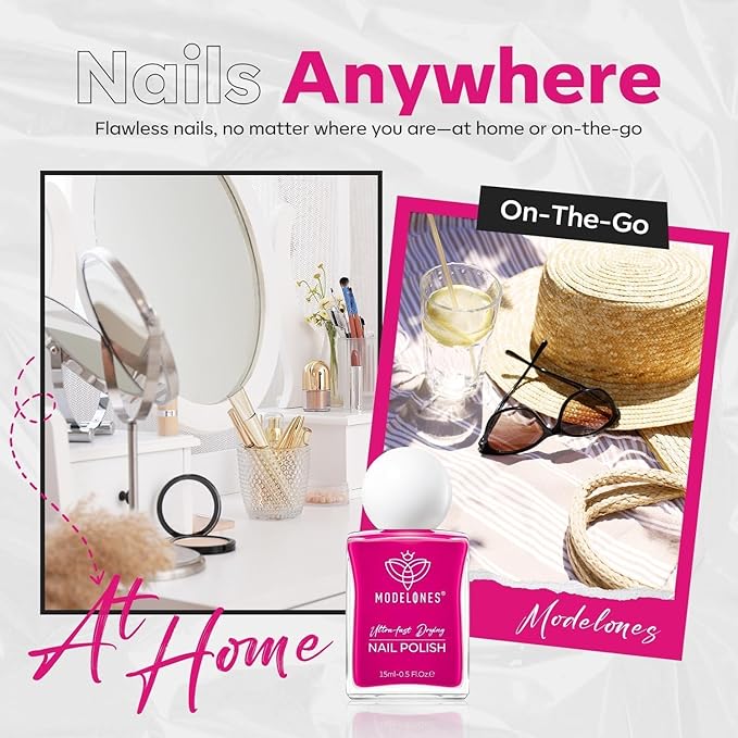 - Endless Nail Creations: modelones 15ml Quick Dry Nail Polish (0.5fl oz) – perfect for minimalist or French manicures, or as a base for nail art. Save time and money while enjoying a creative experience that lets you express your unique style. Ideal for personal use or as a thoughtful gift
