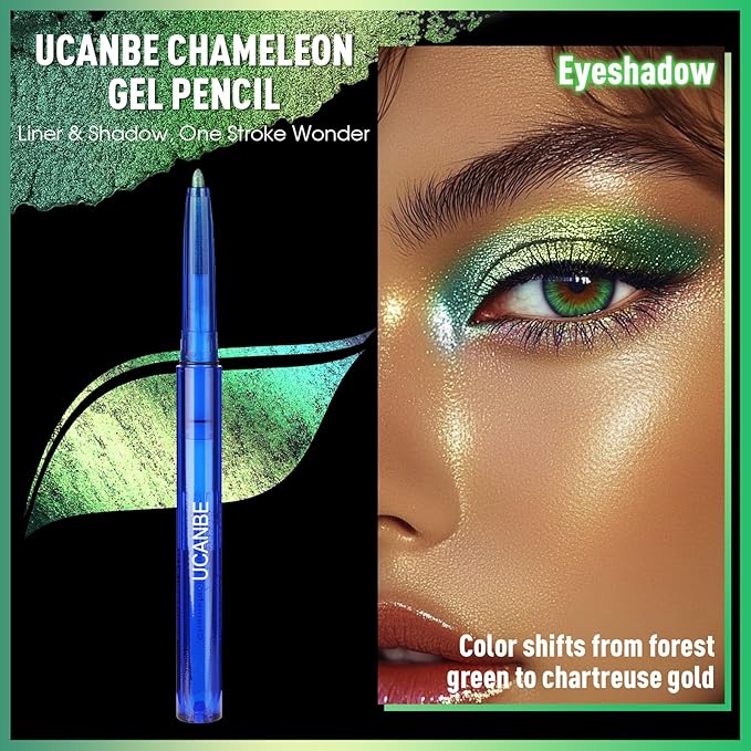 UCANBE Chameleon Eyeshadow & Eyeliner Gel Pencil-Multichrome Shifting Colors Metallic Glitter Eye Makeup,Waterproof Long-Lasting Smudge-Proof Multi-Dimensional Color (Forest Green to Chartreuse Gold)