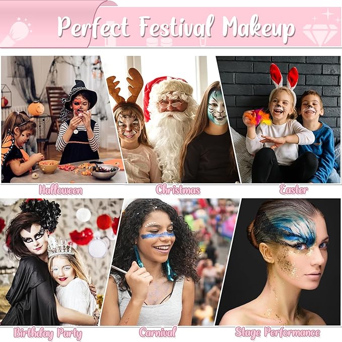 - Create A Dazzling Festival Makeup: The vibrant and colorful glitter powder is ideal for creating a variety of eye-catching Halloween, Christmas, birthday, and carnivals. Our kids tattoo kit is also great for family gatherings, school fall festivals, and more themed parties. Both kids and adults enjoy it