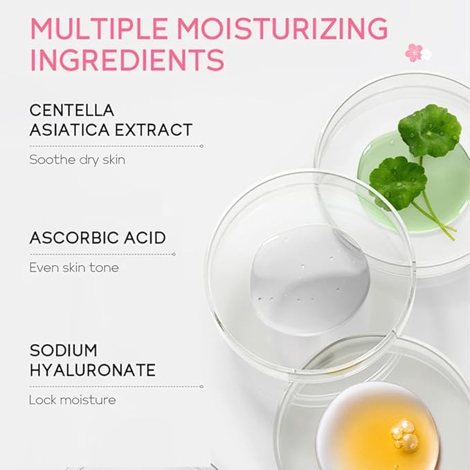 - 【Hydrating&Moisturizing】Our Skincare Gift Set can penetrate deep into the bottom layer of the skin, continuously replenish moisture to the skin, to achieve long-lasting moisturizing skin care effects.Our skincare set is infused with cherry blossom extracts that helps hydrating and moisturizing dry skin