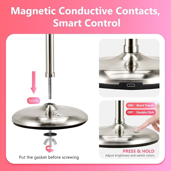 - 【Base One-Button Control】This lighted makeup mirror utilizes a brand-new technology where the mirror and the base are linked via three conductive touch points for power supply. The switch is situated on the base, preventing fingerprints on the mirror surface. You can simply touch it lightly to turn on the light and double-touch to turn it off.