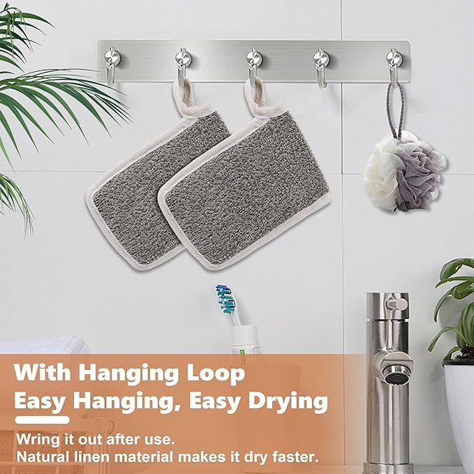 - Bar Soap Scrubber Pouch: Our soap packet body sponge is made of natural flax and towel cotton materials.This bath sponge is mild, non-irritating, friction-resistant.It can easily scrub the body in the shower.