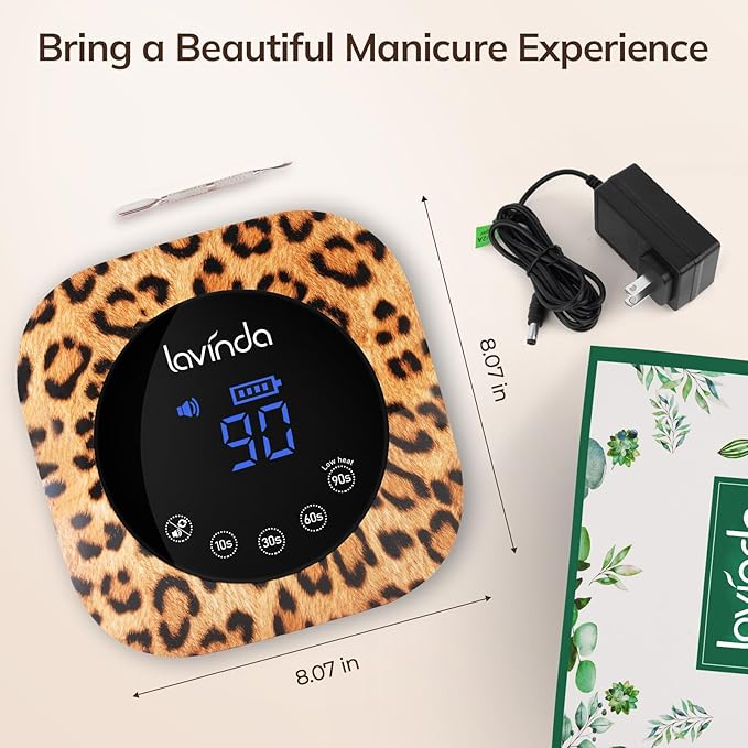Lavinda LED Nail Lamp UV Light for Gel Nails 54W Cordless Rechargeable UV Lamp Nail Light with 4 Timer, 2X Faster Professional Gel Polish Curing Nail Dryer for Salon Use-Leopard Print