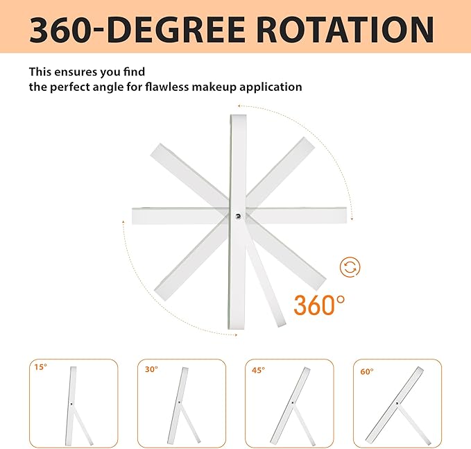 - ๐ใ๐๐๐ยฐ๐๐จ๐ญ๐๐ญ๐ข๐จ๐งใThe mirror allows for 360-degree rotation, making it easy to swivel to any side and find the perfect angle or position for detailed makeup application. It stays fixed in any position, providing you with the perfect perspective.