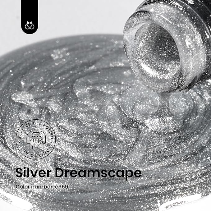 Beetles Cat Eye Gel Nail Polish, 1 Pcs 9ml Sliver Glitter Cat Eye Sliver Dreamscape with Magnet Soak Off LED Nail Manicure DIY Art Home Salon Gifts for Women