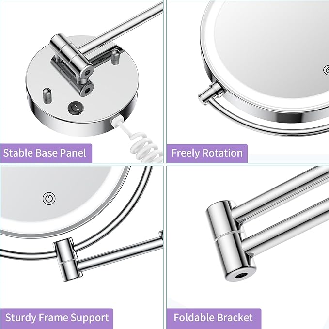- 【Ultimate Flexibility with 360° Swivel and Extendable Arm】 Enjoy the freedom to adjust the lighted mirror exactly how you need it. This wall mounted bathroom makeup mirror rotates 360 degrees for any angle, and the sturdy extendable arm stretches up to 18.5 inches, giving you ultimate flexibility and control for your makeup routine.