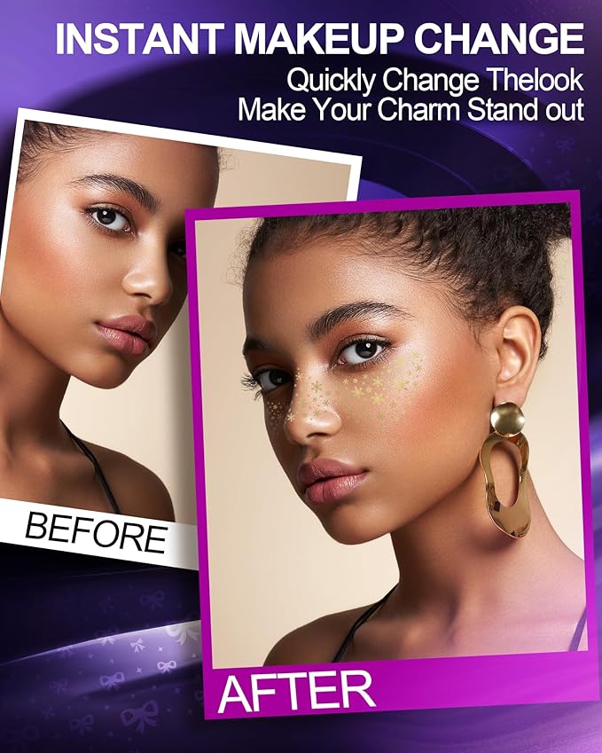- PERFECT FOR ANY OCCASION - Luckybear's glitter freckles face tattoos are the ultimate accessory to elevate your look for any special event. Whether you're getting ready for a glamorous prom, a lively festival, or a fun photo shoot, these sparkle freckles add just the right touch of charm. From beach days to concerts, or even parties, our tattoos are designed to make you shine in every moment, capturing the magic of every occasion.