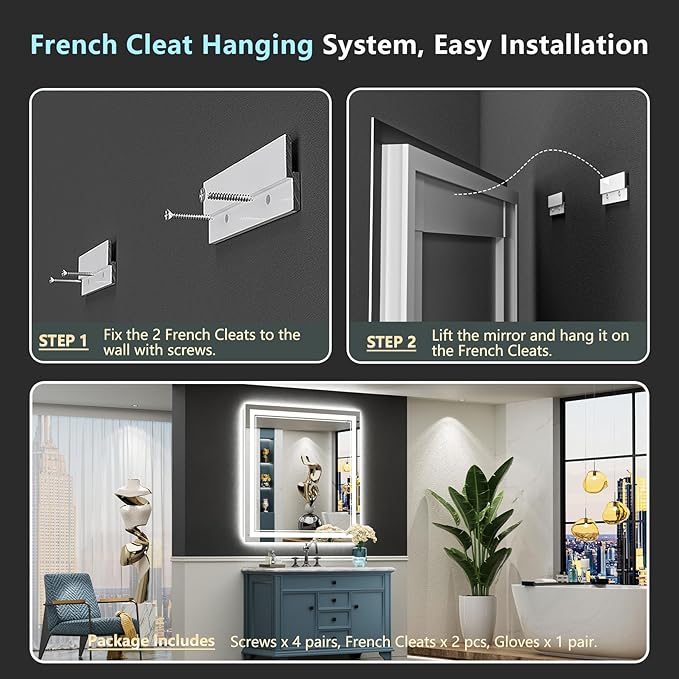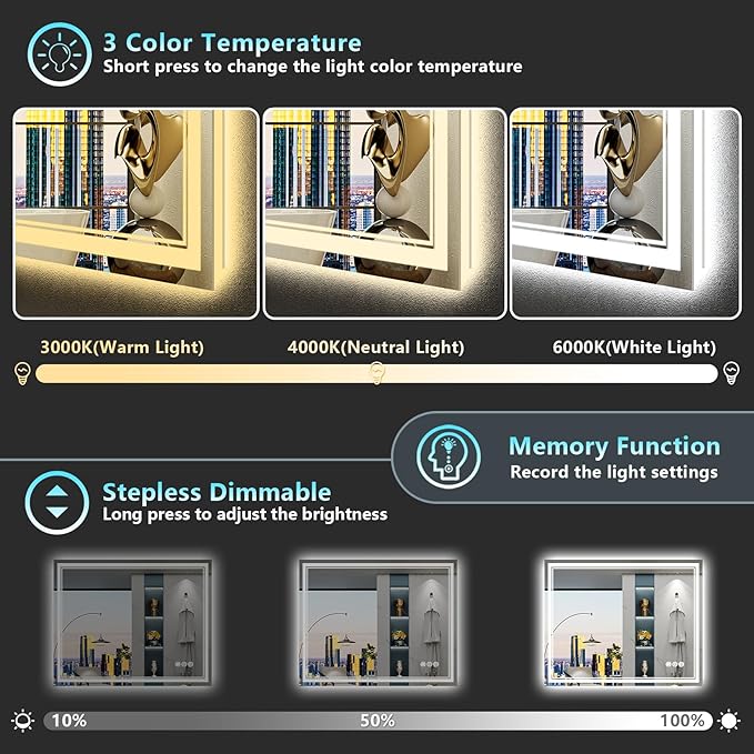 38x38 LED Bathroom Mirror with Lights, Backlit & Front Lit, Anti-Fog Lighted Vanity Mirror for Bathroom Wall, 3 Colors, Dimmable, Memory, HD Tempered Glass, Shatter-Proof, CRI>90, ETL Listed