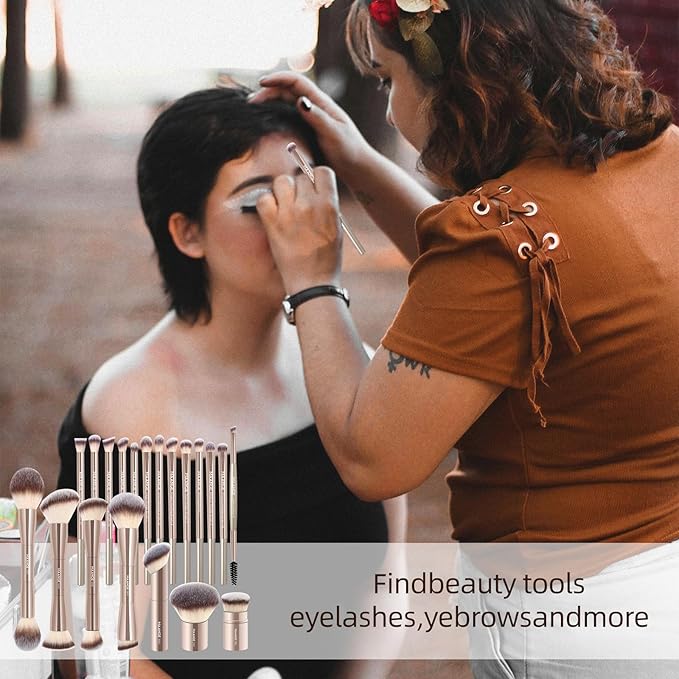 - MAANGE 21-piece Makeup Brush Set Includes: 4 double-ended kabuki brushes, 3 foundation brushes, 13 eye makeup brushes, a Velvet Bag