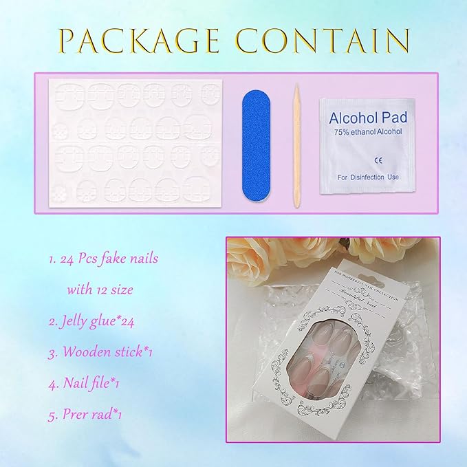 About This You Will Get:12 nail sizes 24 press on nails short ensure a totally custom fit, plus we give... Read more